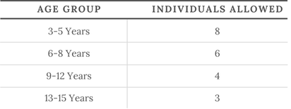- Do not exceed the recommended maximum capacity for each age group as stated below: